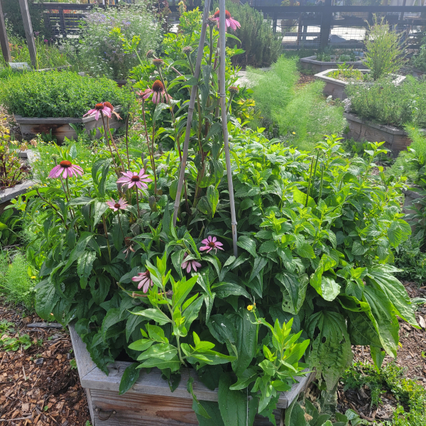The site is a lush and productive farm with rows and rows of organic vegetable and fruit beds, as well as a dedicated herb garden where culinary and medicinal herbs are grown for utilization in workshops or for the Town Fridge.